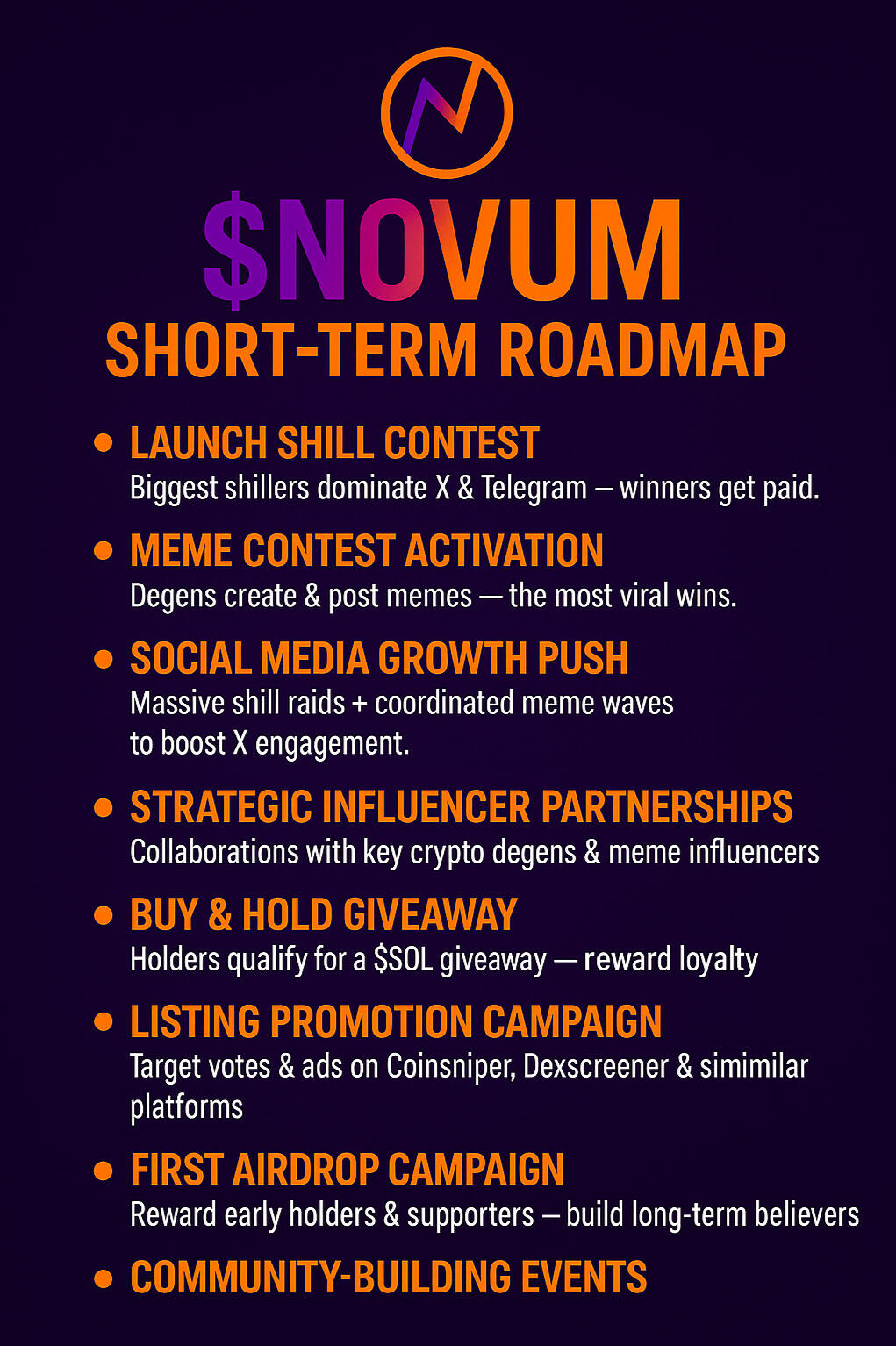 $NOVUM isn’t just another meme coin. It’s a revenge story.Born from rock bottom, this coin is here to conquer charts and wreck doubters.Fueled by memes, degens, and raw energy — this is a ride you don’t wanna miss.